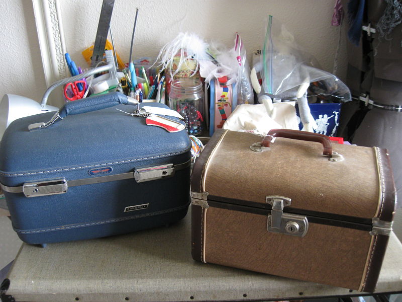 I found these two train cases for $4 a piece! They are by no means perfect but with a little TLC they will be good as new. Well new-vintage. Something like that. Just go with it!